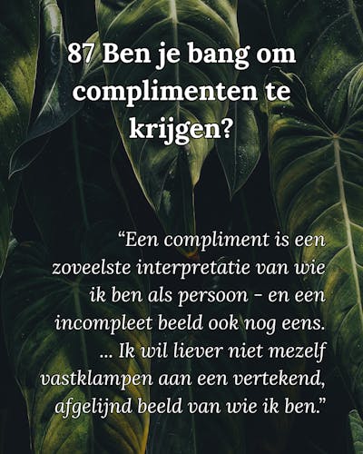 Weken later, zonder duidelijke aanleiding, zonder signaal is hij weg. Zijn blik is wazig en op de grond gericht of in het ijle. Als ze vraagt om oogcontact ziet ze alleen die verdomde spoken, hem vindt ze niet.Ze kruipt tegen hem in de zetel omdat woorden nu niet helpen, zachtheid misschien wel.Hij duwt haar van zich af. Ze schrikt. Wat heeft ze niet opgemerkt? Wat heeft ze gezegd? Wat heeft ze gedaan?Weken gaan voorbij. Geen zoen, geen aanraking, geen hand, niets.Ze wordt gek in haar hoofd en stelt vragen, ook aan externen.Ze mist hem, haar fantastische man die haar aanvult, opvult en laat vullen.Ze luistert, probeert te doen wat hij vraagt. Maar niets helpt.