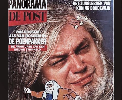 het is die oliebollenkop die kleuterhaan met maïskrop het is dat beest met kale kam die konthaarstroper straks op vette dinsdag dan pak ik hem ik sleur hem door ijle lucht ik vlecht een vuurkorf met zijn blauwe pezen houd hem nu goed vast die eikelmuil zeul hem mee zet hem op zijn plaats ja op die scheve troon voor holle geesten ik brand een teken heilig kruis hier op zijn roze eikel steek hem nu maar in dat vlaamse leeuwenhol die katjes zijn zo mak als crème brûlée en gisteren was het ik zoog de koetjes lekker leeg danken wil ik eerst dat geil boerinnetje ze karnde schone boter ik leg het gele spul straks op de schedel van die sul ik smeer het open met een linke hand ik zal zijn kaken daarna plooien mul en hooi diep in zijn tronie persen mooi zo koning leopold flauwe schrik van alle lome vogels terwijl je daar nu zit twee walvistranen bloedt peuter ik het snot nog uit mijn neus ik adem door een kogelvrije long zing een liedje over geuzen daag de wespen uit het steekspel wil ik graag verliezen azen ga ik op een adder die zich daarna in uw aarsgat boort de republiek begot die kwam er niet het volk is dom en dwaas het wroet veel liever voort in modderland het kan zich niet verweren door een spraakgebrek dat in hun luizen leeft ach gij kroonkonijn met keutelkop slurp nog wat aan oude wijn ik wacht intussen wel op boudewijn nog zo'n idioot die zich wijzer waant dan land en volk ons samen met zijn spaanse kloosternon de les wil spellen over leven over dood       Roeland Wittebolle schreef een ode aan Jean-Pierre Van Rossem en zijn woorden vinden een plek in de reeks 'Hormonoloog'