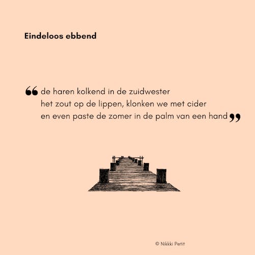 Ik weet, denk en vergeet,want voelen, onthouden en durvenzijn dingen die ik liever observeer. Ik denk genoeg,veel te genoeg,alles om de echo’s te dempendie anders mijn hart zouden raken.Denken maakt je sterk,maakt je scherp,bouwt muren zodat niemand zietdat de wolf toch al binnen zat.Niemand zal zijn verblijfsduur durven vragen,ik ook niet. Ik ben slechts de toeschouwervan hoe mijn brein door hem verder wordt geduwdin een lus zonder einde. Ik was oudvoor ik jong mocht zijn,en de wereld toonde mij eerder schaduwendan vormen.Sindsdien zie ik scherper dan de meeste blikken kunnen dragen,en soms zie ik meerdan ikzelf kan verdragen.Ze zien het oppervlak van de zee,niet de diepte waar ik al jaren zwemzonder adem te halen,niet hoe ik word meegesleurddoor stromen waarin ik verdrink als ik stop met zwemmen,dus ik zwem. Mijn brein is mijn pronkstuk,het enige dat onaangetast lijktdoor het virus genaamd kennis.Het gloeit, zo feldat de glans op het schermde ruis op de achtergrond verbergt.Men noemt het talent,maar het voelt eerder als een handdie zacht maar zekerop mijn nek rust,een hand gevormd uit verwachtingen, eisenen honger naar perfectie,die mijn stembanden zo stevig vastgrijptdat zelfs ik mijn stem niet meer hoor. Mijn hoofd is een nachtelijk landschapwaar de sterren te veel vragen stellen,waar geen bloem kan groeien,alleen gedachten die zich vermenigvuldigen als insecten.De maan schijnt er genadeloos op,de zon wacht al maandenop een kans om toch te schijnen. Gevoelens zijn water,en ik heb nooit goed leren zwemmen,rationaliteit zijn mijn zwembandjes.Dus blijf ik denken,om niet te verdrinken,al weet ik zelf maar al te goeddat het denken mij onder water duwt. Maar misschien weet ik wel te veel.Ik weet hoe het weten mij wurgt,hoe denken vreet aan mijn denken,hoe wijsheid mij eigenwijs maakt.En ik weet dat het fluistert,aantrekkelijk maar dwingend,tot mijn gedachten niet meer de mijne zijnen ik liever mijn ogen sluitvoor het beeld dat ik te zien ga krijgen. Misschien moet ik eens stoppenmet al dat denken.Wat denk je?Ben ik alweer te ver aan het denken?