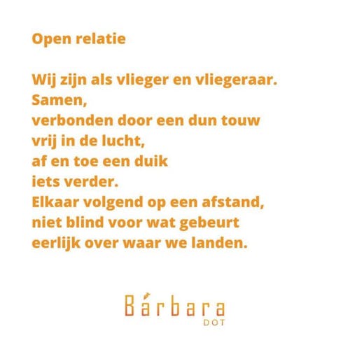 ‘Zeg, dinges, zoon, ik heb er even over nagedacht.’ Maar toen hij opkeek, was er niemand meer. Iedereen was al lang iets anders gaan doen. Hij had daar meer dan een veertig minuten staan reflecteren en zijn zoon was al op avontuur vertrokken, zei een aangetrouwde tante, die net een paar witgewassen begrotingen uit de wasmachine haalde. Hij vouwde zijn lange puntbaard op, dat pleegde hij te doen ter ontspanning. Misschien is het zo slecht nog niet, dacht hij, nu kan ik Ontroerend Goed, wat in het toekomstige mandje van zijn zoon lag, aan mijn eigen mandje toevoegen. Het stemde hem gerust dat dit belangrijke thema niet door zijn zoon verprutst kon worden, maar tezelfdertijd maakte het hem mismoedig dat hij als vader gefaald had. Ach ja, dacht hij, dat is dan maar zo.