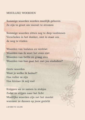 Haar gedachten schoten alle kanten op terwijl ze het boek van hem aanpakte. Wat was hij oud geworden, maar tussen zijn grijze haar en rimpels zag ze nog steeds dezelfde warme oogopslag. Waarom had ze hem zo lang niet gezien? Wat was er gebeurd? Was het bespreekbaar? Ze wist het weer, hij moest plotseling naar het buitenland, voor ontwikkelingswerk, en dat was dat.