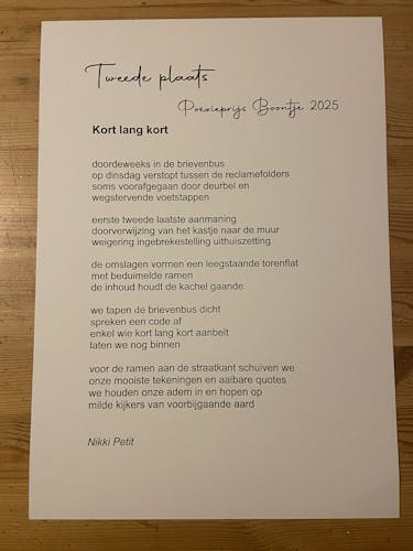 Kort lang kort ging met de tweede plaats lopen van de 30ste Boontje Poëzieprijs, lustrumeditie (2025)