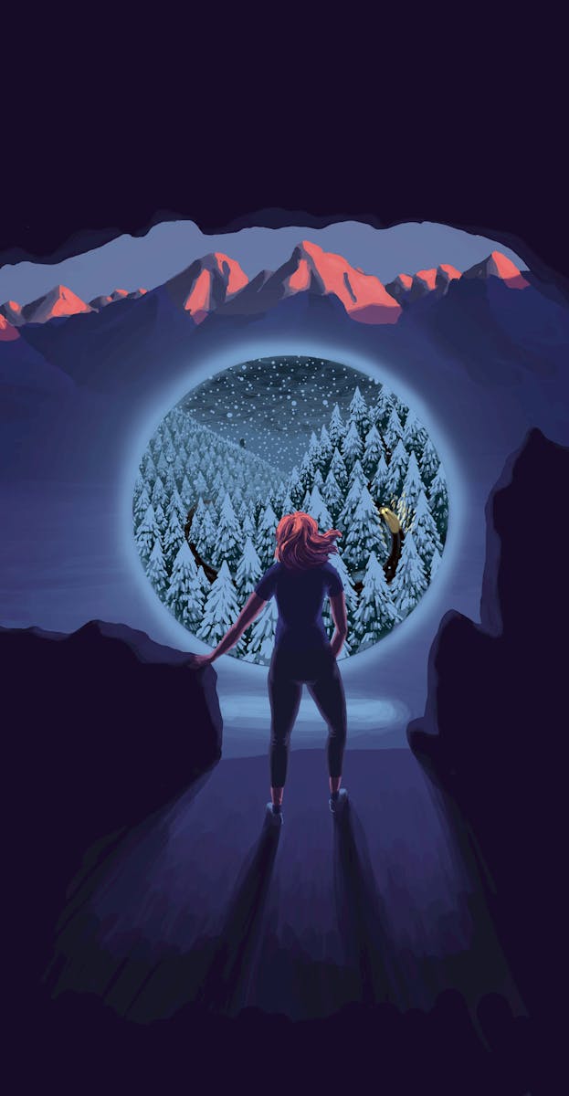 Overal om ons heen heerst de inktzwarte nacht. Dankzij het licht van de volle maan kunnen we vormen onderscheiden, maar de donkere lariksbomen die ons omringen benemen ons het zicht. Gelukkig markeert het asfalt de weg die we moeten volgen. De weg waarnaartoe? vraag ik me voor de tweede keer deze avond af.