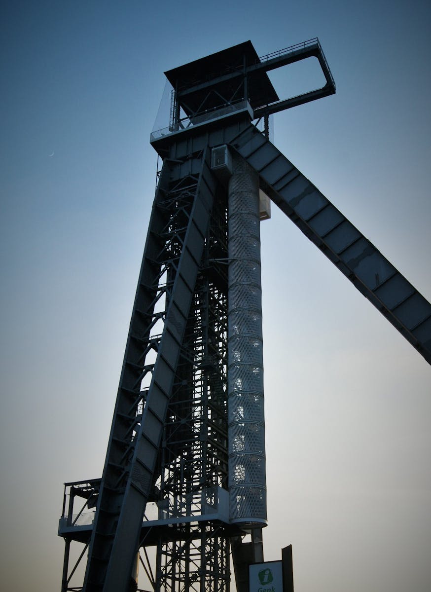 Voor de workshop een foto moeten maken van een vrouw bij een mijnschacht.