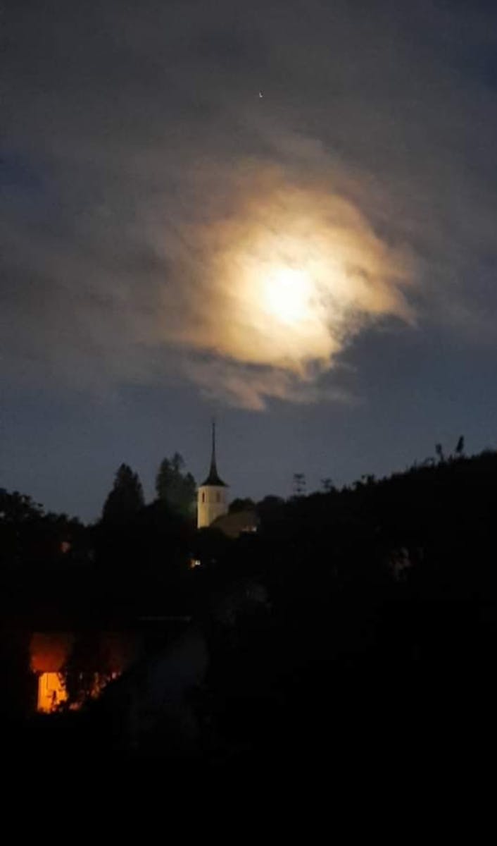 De maan schijnt nog boven meneer pastoor zijn huis.