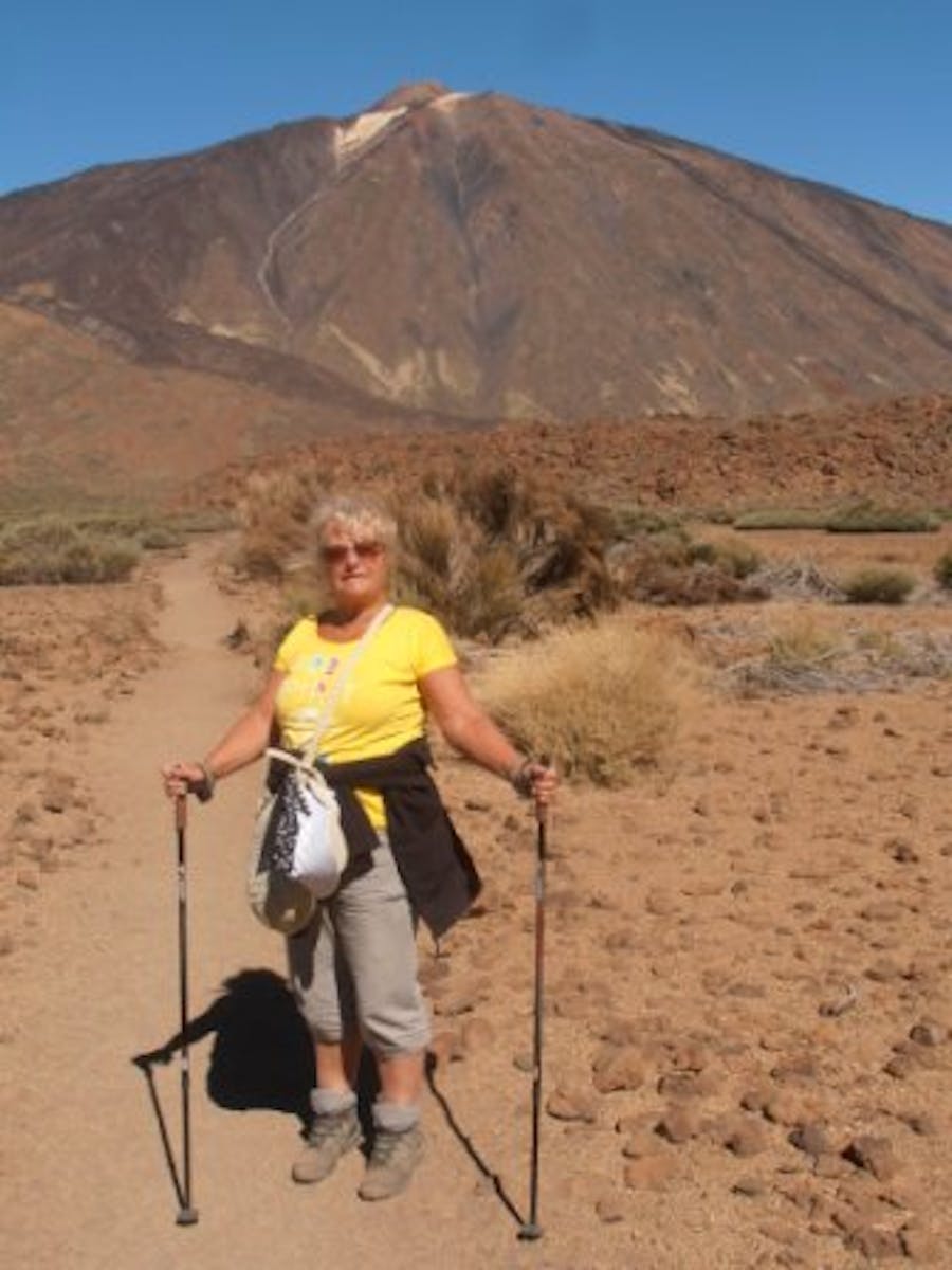 De zon schijnt warm over onze hoofden en we puffen tussen de lavarotsen de berg omhoog. Klimmend als berggeiten steken wij onze wandelstokken tussen het lavagrind. Naargelang wanneer de vulkaan uitgebarsten is, variëren de kleuren van de lavastenen. Grote zwarte piekerige rotsblokken tot kleine ei- grote witte, roze/roodbruine naar azulejos blauw/groene lavabrokken. Naargelang het stijgende pad steiler en steiler en de lucht op deze grote hoogte van ca. 2500 meter ijler en ijler wordt, vertraagt het wandelritme en dreunt ons hart sneller in onze oren. Op elk plat plateautje houden we eventjes halt om te drinken en om ons hartritme terug op mensenniveau te krijgen. Rond het middaguur komen we aan een wandelkruispunt waar de gekleurde streepjes en cijfertjes weer onvindbaar zijn. Wij zoeken hier een min of meer platte lavasteen uit en laten ons vallen om te picknicken. We zullen daarna onze wandelkaart raadplegen. Achter ons komen een paar echtparen de berg opgeklommen. In de stilte van de ijle berglucht zweven Duitse, Scandinavische en Franse woorden onze richting uit. De Duitsers struikelen bijna over onze voeten .Ondanks hun omvangrijke buikenomtrek denderen zij ons op een marsritme als blinde moffen (heu sorry) mollen voorbij. Zij kregen met de moedermelk vermoedelijk de basisbeginsels van het wandelaarjargon niet mee. Nu moet men niet zoals de Oostenrijkers overdrijven en alle tien stappen god met hun Grüss Gott aanroepen, maar met een Spaans ola, een halo of een universeel vriendelijk knikje kom je als kruisende wandelaar toch ineens een stuk sympathieker over. De Franse man hijgt calorieverbrandend het bergpad op. Hij ziet knalrood van inspanning. Het zweet gutst van zijn onbeschermde glanzende kale hoofd. Ik hoop alleen maar dat hij op onze hoogte geen hartinfarct krijgt. Van de tegenovergestelde richting naderen twee jongelui. Een prachtig gebruinde jonge man en een jonge vrouw met benen tot aan de hemel. Haar short bedekt amper de ronding van haar achterste. Haar borstjes wippen als puddingen op en neer. De zon weerkaatst blauw op haar lange pikzwarte haar dat ze telkens heel sexy naar achter zwiept. Geen druppel zweet is op haar mokkakleurige lichaam te bespeuren. Zij heeft twee koolzwarte oogjes, een redelijk grote neus en parelwitte tanden in een glimlachende mond. Manlief staart haar vol bewondering aan. Als ik vraag of zijn pornografische voorstellingen voer voor publicatie zijn, lacht hij: “Het is wel duidelijk dat als je mooie vrouwen wil zien, je niet gedurende deze senioren- overwinterperiode op het strand moet rondkijken. Het is niet omdat ik wat ouder word, dat ik niet kan genieten van een Miss Spanje die hoog op de berg mijn pad kruist. En, daarbij, je weet dat ik van grote neuzen hou.” Dat is voor mij, die met Pinokkio een spelletje ‘om ter langste’ zou kunnen spelen, weeral een geruststelling.