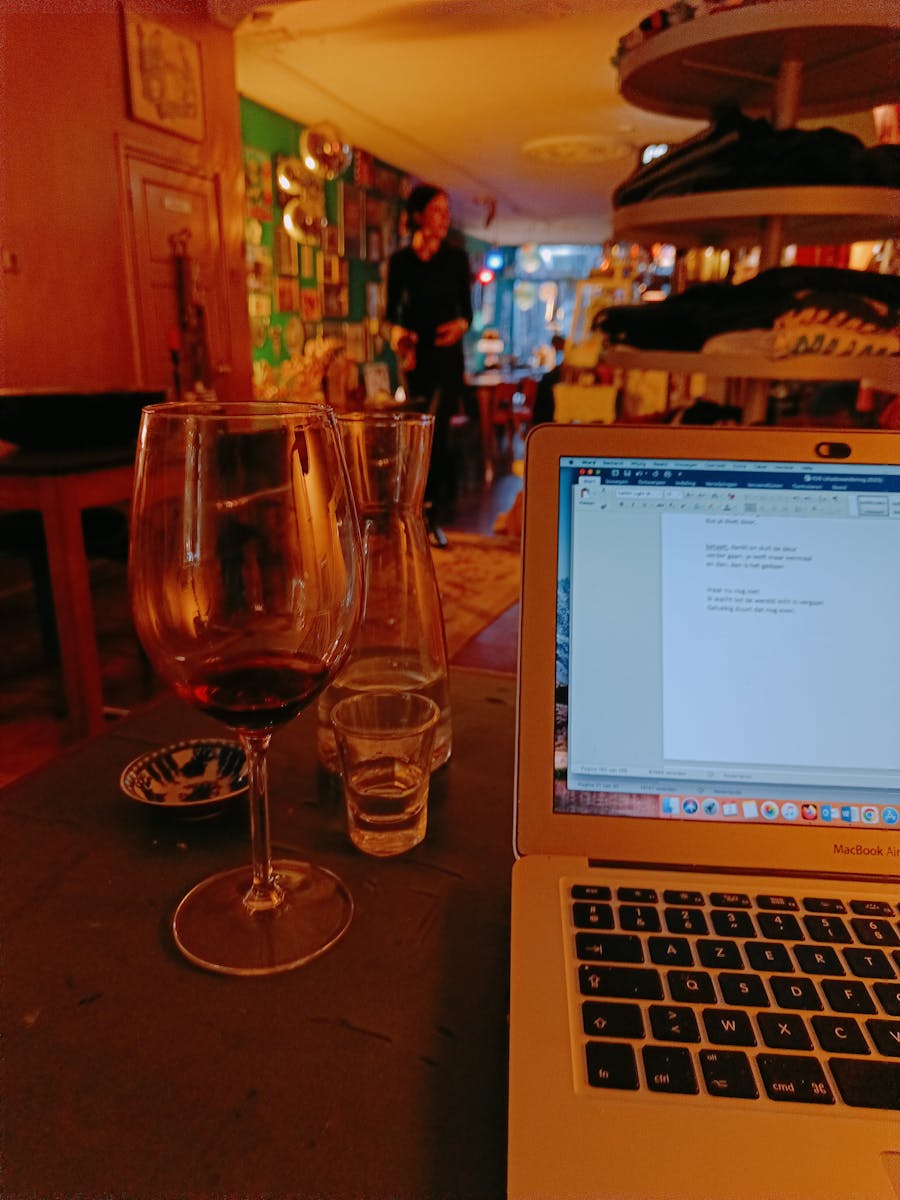De hond kreunt nog eens en hijgt hunkerend na als ze opstaat. De arme stakker. Ik zit achter mijn laptop en volg het gesprek. Focussen lukt nu toch niet meer, niet na een derde Blonde. Zij begint over de kat van de buren, die ook zoveel aandacht vraagt.