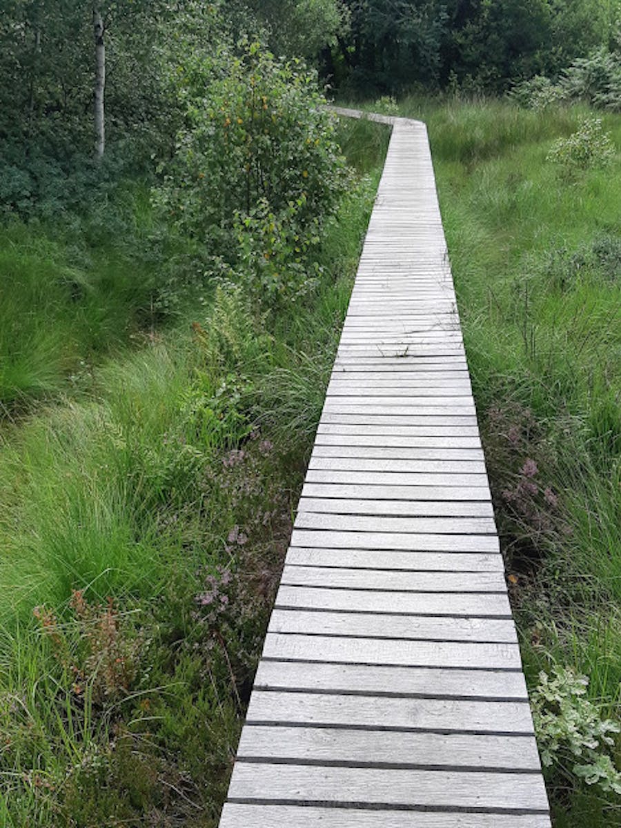 Het gedichtje stopt in mijn hoofd. Turf rijmt niet zo makkelijk. Ik neem foto’s. De gebogen lijn van het licht houten vlonderpad naar de horizon met berkenboompjes aan weerszijden zal goed scoren op Instagram.