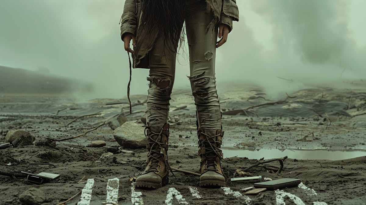 Op de rand van een uitgedroogd meer stond Antille. Haar silhouet was scherp afgetekend tegen het bleke licht, haar zwarte, lange haren wapperden in de droge wind. Ze droeg eenvoudige, versleten kleren: een grijze jas vol scheuren, stevige maar afgedragen laarzen, en om haar hals hing een leren koord met een vervaagde munt eraan. Haar handen waren vuil van het graven in stof. Onder haar blik lagen de resten van een wereld die zichzelf had verspeeld: een halfvergane koelkast, karkassen van drones, plastic speelgoed dat allang zijn kind verloren was. Smartphones lagen verspreid als schelpen op een strand, ooit glanzend, nu dof, zinloos. Ze was daar niet om te zoeken, maar om te herinneren.