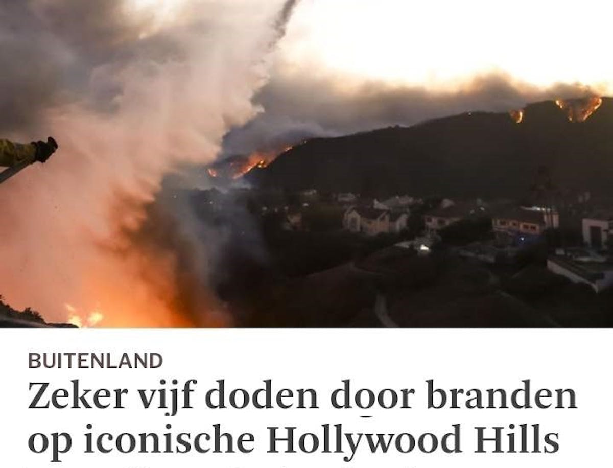 Alvast vijf doden door vuur op de heuvels van Hollywood.