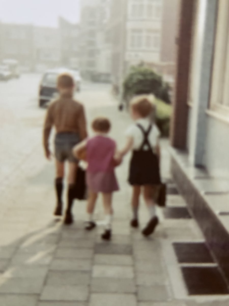 Mijn broer had als enige een schaduw, hij keek er niet eens naar om. In zijn boekentas een agenda, en orde, een boterham bij oma gegeten. Wij liepen weg van de grote tafel. Van het appartement heb ik beelden opgeslagen.