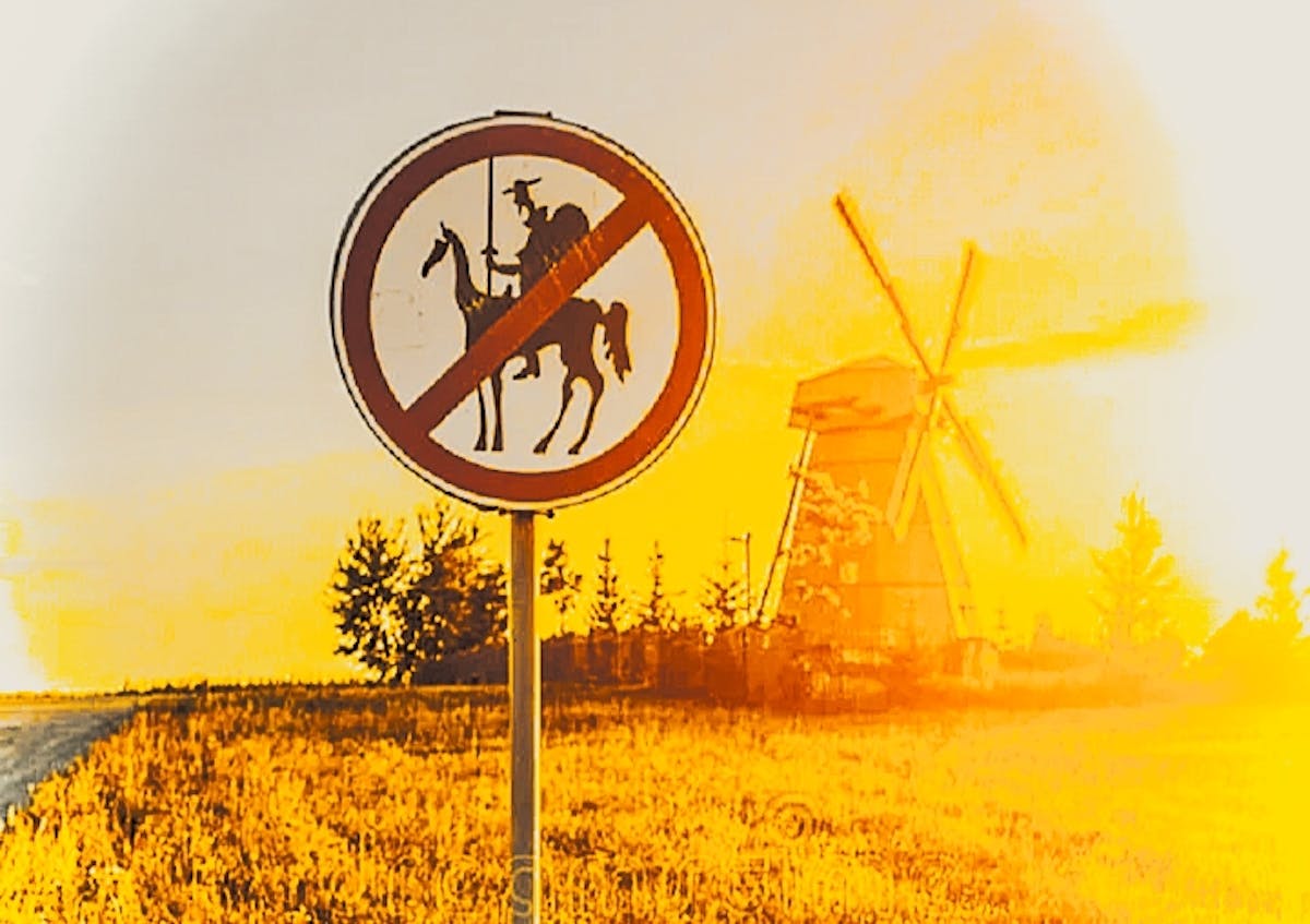 Echt! Stop hier, man! Kom van dat paard af! Passeer dit bord niet!