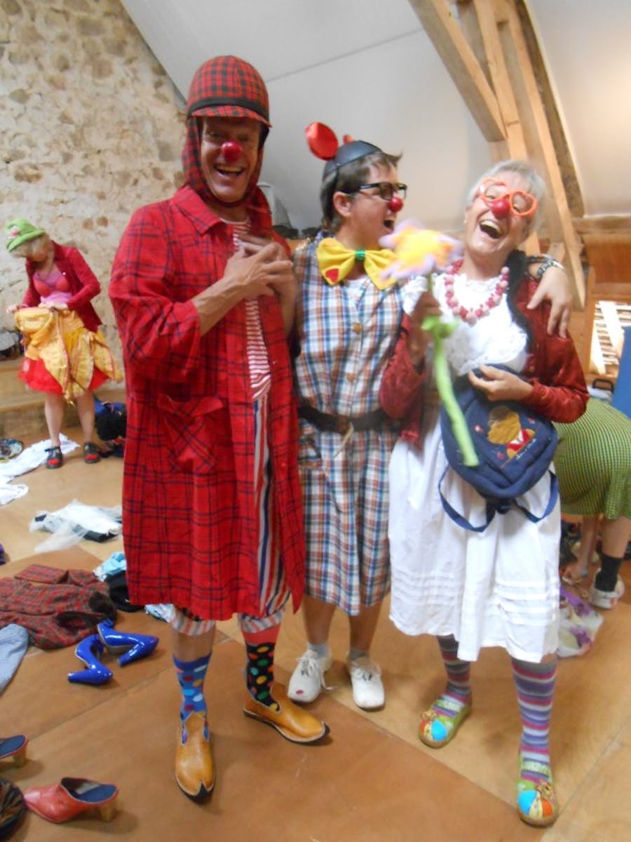 Tijdens de eerste sessie van de dag ventileren we onze indrukken en onze gemoedstoestand. We drukken onze dankbaarheid uit voor grote en kleine dingen des levens. In de laatste sessie werken we rond focus, aandacht richten en tempo. Deze oefeningen zijn ook komisch om te observeren maar ook zoals alle oefeningen aartsmoeilijk om ze “geloofwaardig” te doen. Het wordt ons duidelijk dat clownerie geen gemakkelijke discipline is die toch heel wat vaardigheden vereist. We stellen vast dat we in clownerie veel maatschappelijke codes en evidenties moeten opzijschuiven om terug te gaan naar ons “kinderlijke” ik. Zo kunnen we onze verwondering en naïviteit terug naar boven laten komen. Tijdens het opruimen van de kamer geniet ik samen met Marijke van de prachtige muziek uit de film “Schilders list”. De weemoedige, melancholische toon past uitstekend bij de situatie. Dit soort workshops blijkt vooral fijngevoelige, optimistische mensen aan te trekken die nieuwsgierig zijn naar andere ervaringen en even willen ontsnappen aan de dagdagelijks ratrace. We schrijven onze wensen neer op een kaartje dat we volgend jaar zullen ontvangen. Ik wens mezelf o.a. letterlijk maar vooral figuurlijk een “zachte” landing toe! Iedereen blikt moe maar voldaan terug op de afgelopen dagen en verlangt ook weer naar zijn eigen nest. Bij het afscheid met Els kreeg ik nog een deugddoend complimentje. Zij omschreef het figuurlijk in de trant van “je bent uit de juiste klei geboetseerd als clown, alleen moet er nog wat structuur uit komen”. Met deze woorden kan ik met een opgeheven hoofd naar huis.
