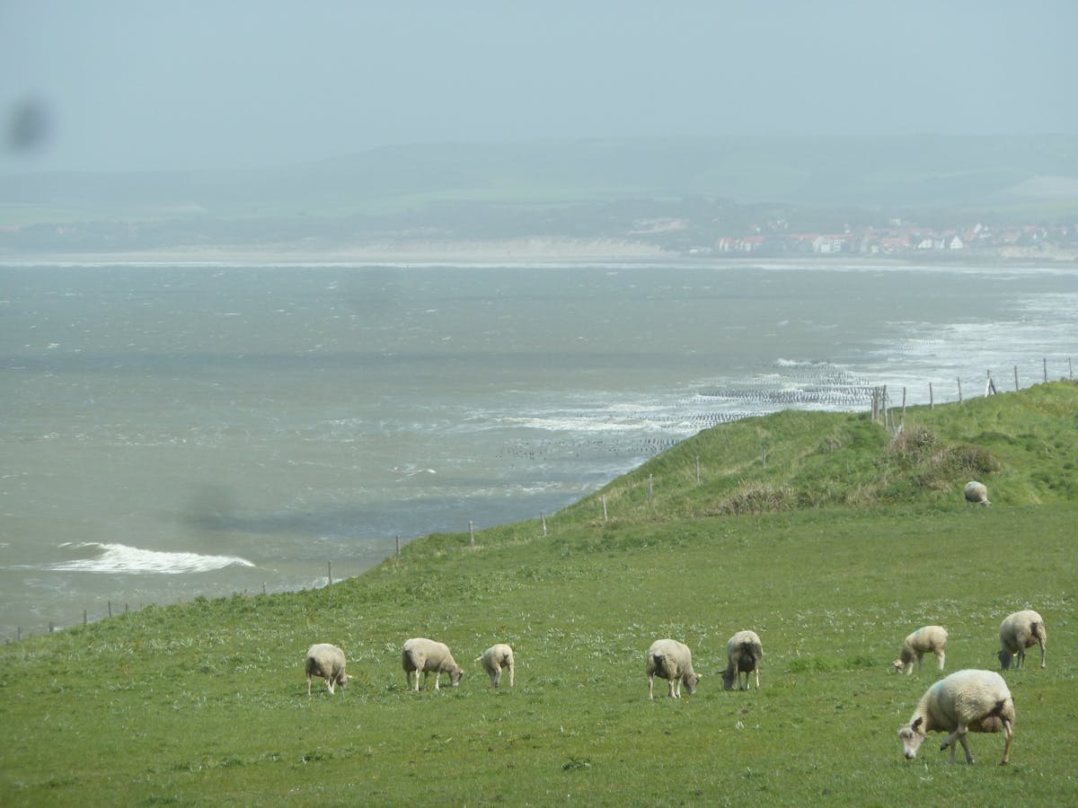 ‘T’is toch altijd spannend om eerst het water te horen vooraleer je er een glimp van opvangt, vind je niet. Nog even klimmen en we zien haar.’ Met overdreven dichtstem voeg ik eraan toe: ‘de zee: een vertrouwde kracht die nooit exact dezelfde vorm aanneemt.’ Haar reactie had ik wel verwacht: