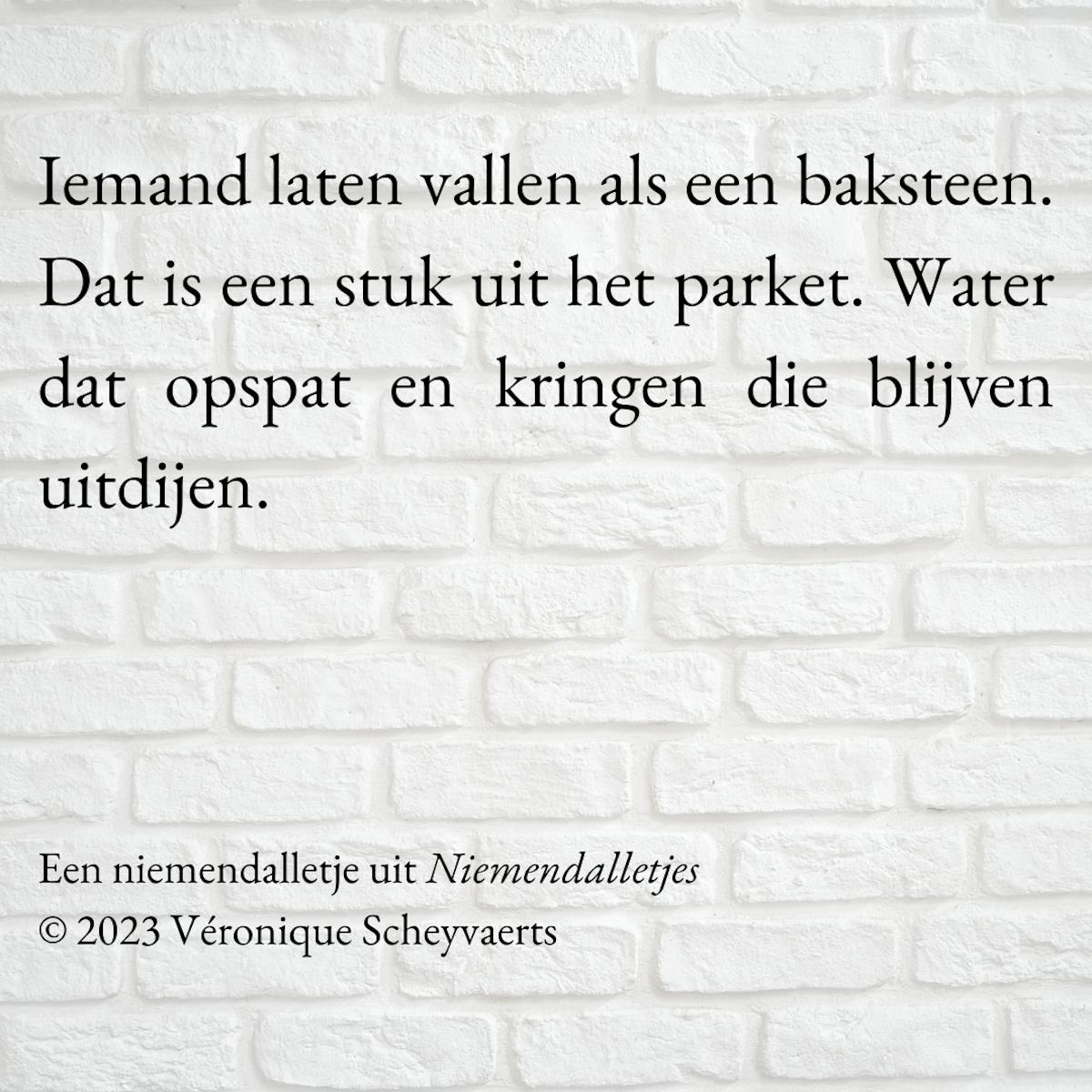 Iemand laten vallen als een baksteen. Dat is een stuk uit het parket. Water dat opspat en kringen die blijven uitdijen.