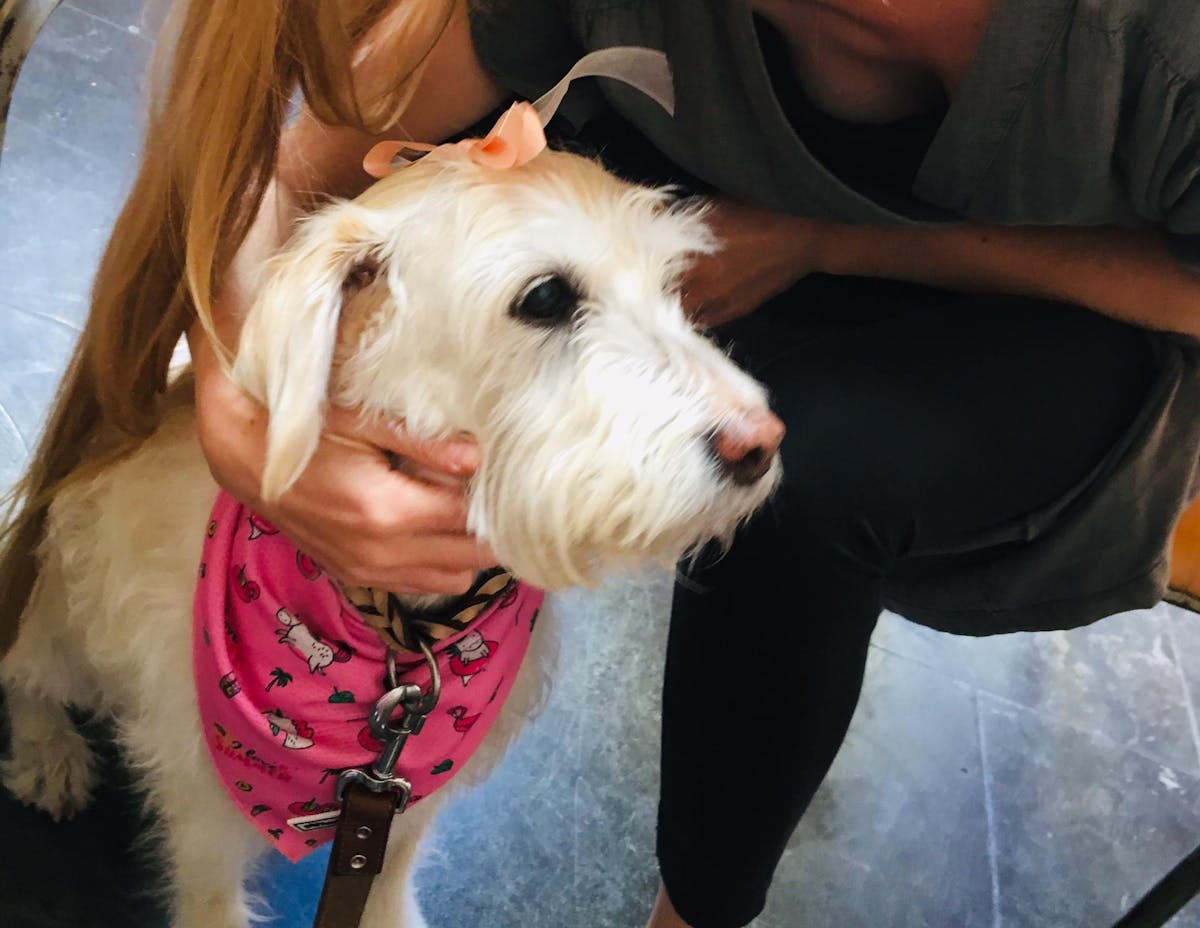 Viola houdt voet bij stuk, ritst haar handtasje van de tafel en snelt weg. Als ze voorbij mijn tafel komt hoor ik hoe ze luid in zichzelf praat: “¿Un perro?de ninguna manera!”