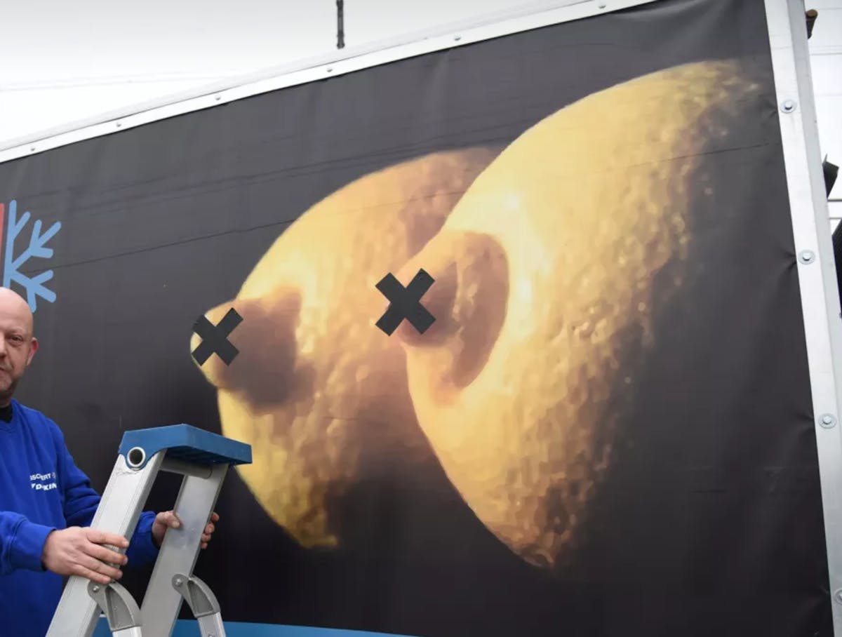 Bron: De Morgen. Nieuwe anonieme klacht nadat koelbedrijf zwarte kruisjes over ‘vrouwonvriendelijke’ reclame heeft geplakt: ‘Ben het beu’