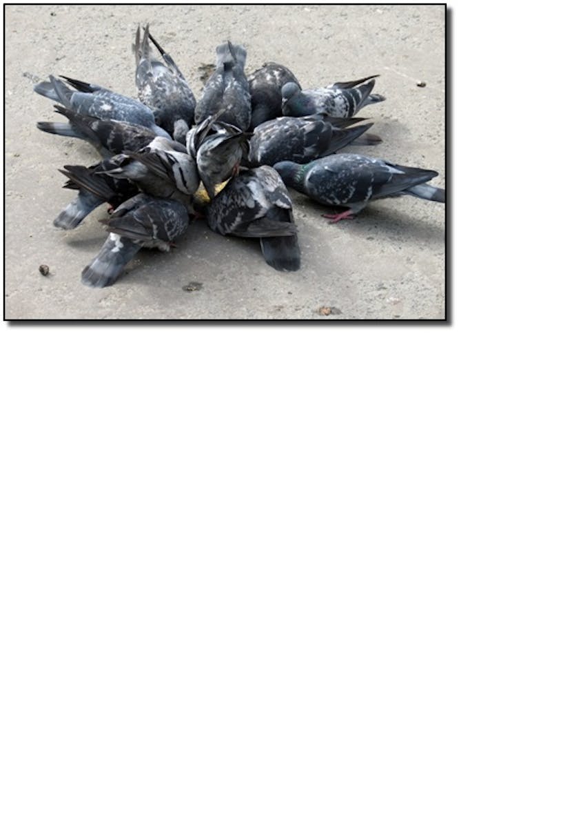 Met een welgemikte vingerknip vliegt zijn sigaret tussen de rondpikkende duiven. Even stuiven ze verschrikt op, maar ze kunnen hun nieuwsgierigheid niet bedwingen. De stoutste pikt herhaaldelijk naar de peuk, maar de rook die in haar oogjes kringelt, doet haar telkens weer terugdeinzen. De vrouw die naast hem op de bank zit, beloont hem met een vuile blik, schudt nog wat kruimels uit de verfrommelde broodzak en probeert met wat luide kusjesgeluiden de aandacht van die grijze pleinbeesten af te dwingen. Hij schat haar zo rond de zestig. Ze doet hem aan zijn eigen moeder denken. Even oud, even dik en even onnozel, vindt hij.