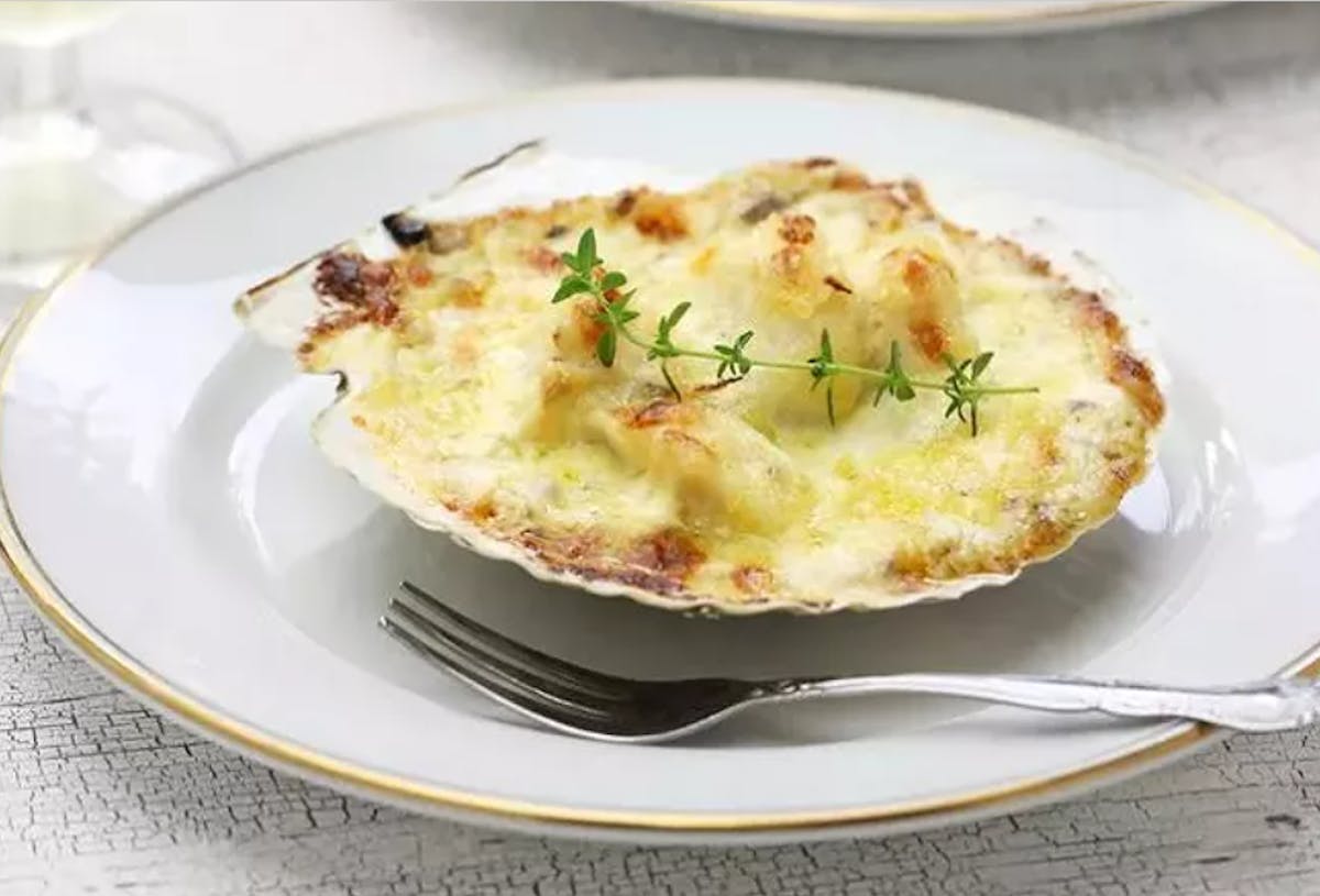 Vantussen mijn benen meldt zich een geur aan in mijn gezicht van gegratineerde sint-jacobsvruchten in roomsaus.