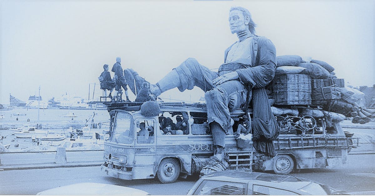 Als er een hijskraan nodig is om deze harlekijn op zijn toneel te krijgen, at hij weer eens soep met vloeibaar lood. Wat is hij toch mallotig dom.