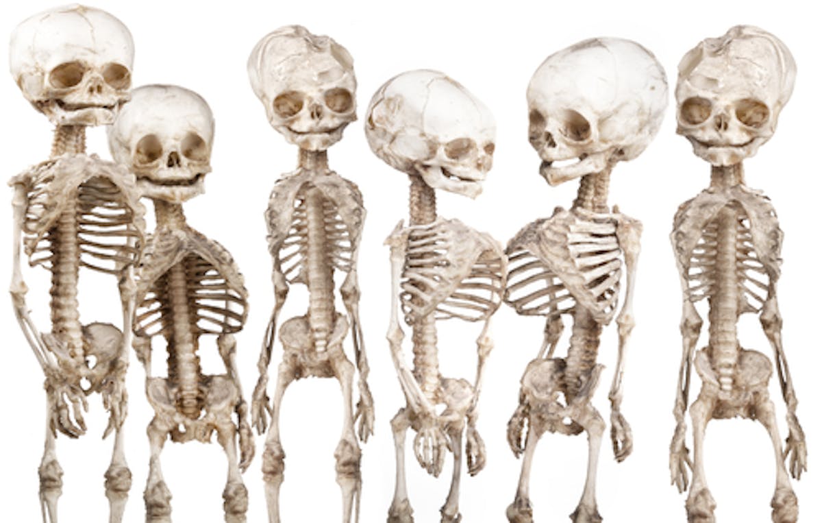 Toch aarzelden we maar heel even voor we, die ene keer dat de deur van het didactisch lokaal tijdens het speelkwartier per ongeluk openstond, ongezien het kamertje binnenglipten. Ronny, Dirk, Marc, Erik, Carl en ik. Zodra de deur in het slot viel, reikten onze handen, de een al wat klammer dan de ander, naar de lichtschakelaar. Want een geraamte op de tree van de klas is een ding, op armslengte in het donker een ander.