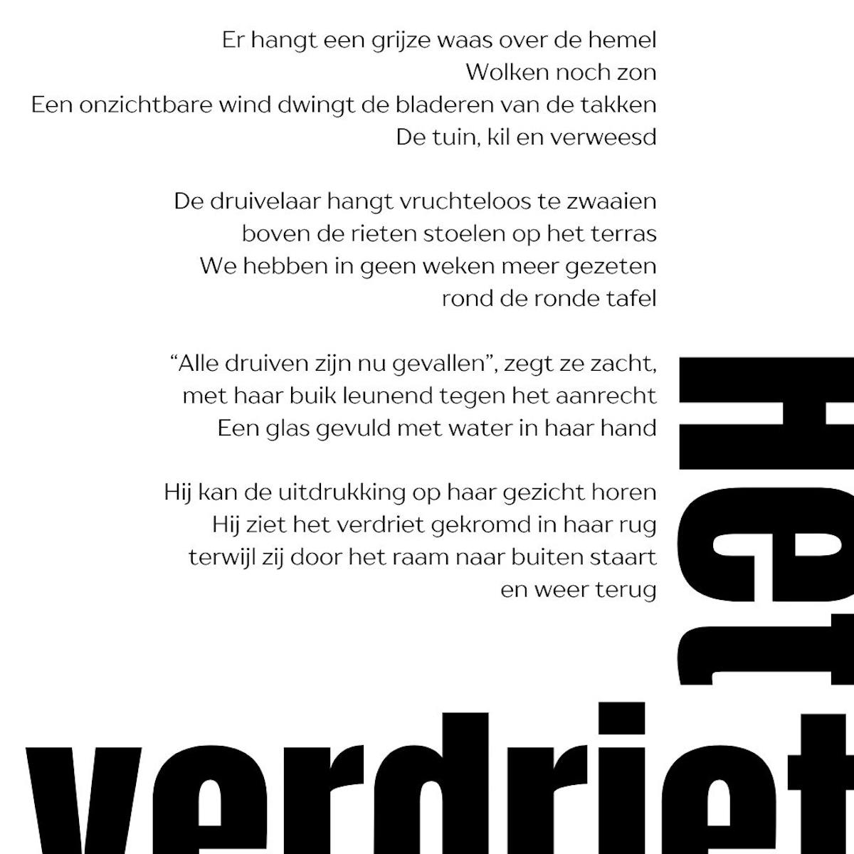 Hij ziet het verdriet gekromd in haar rug