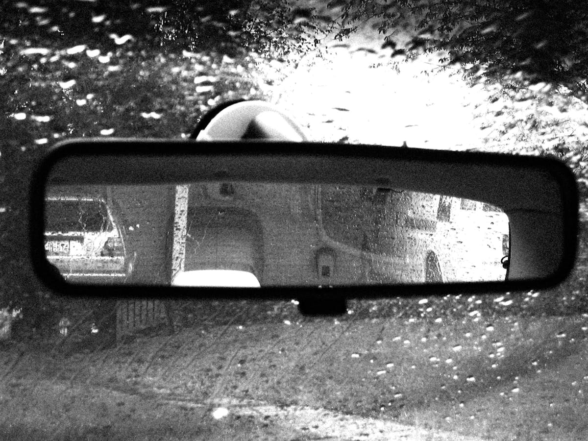 in de achteruitkijkspiegel