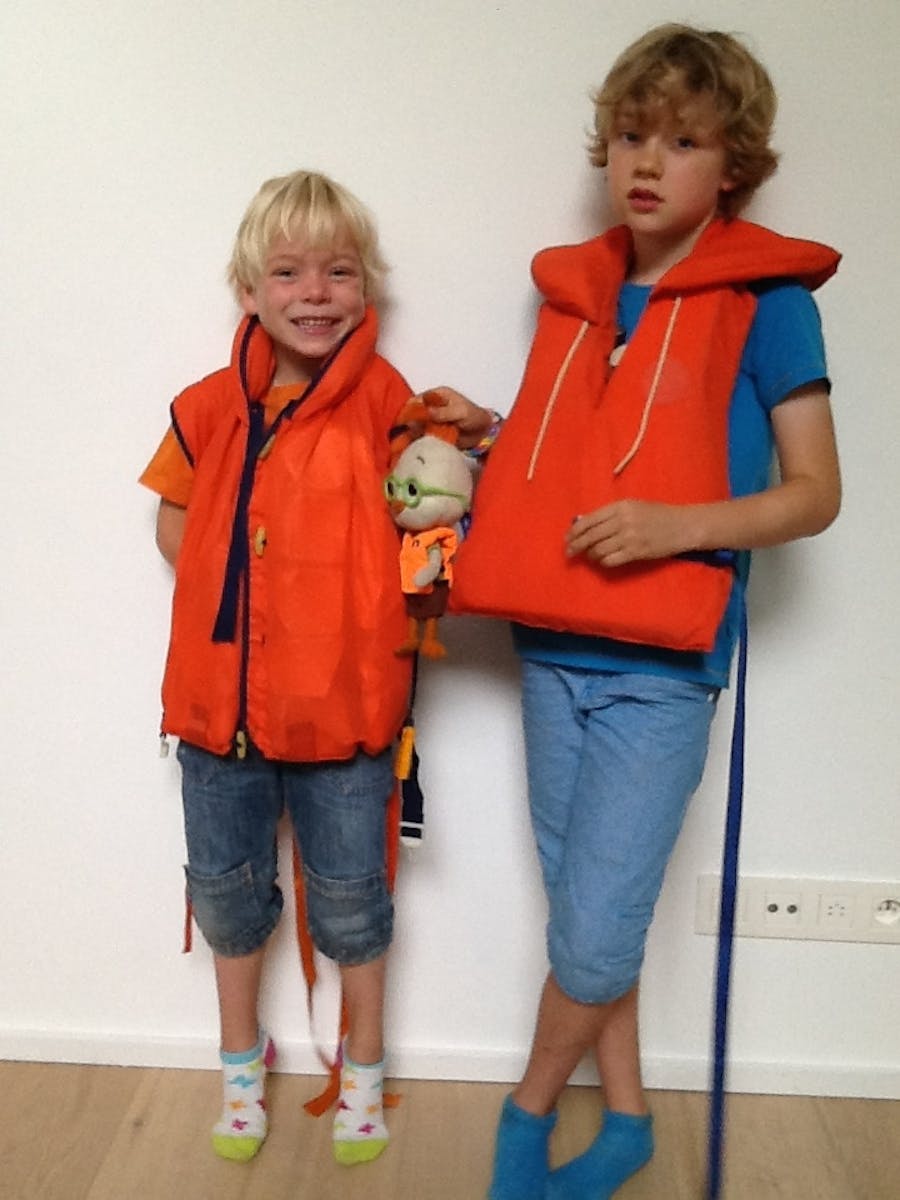 ‘Mijn kinderen leren zeilen, zei hij, met dit zwemvest kan hun knuffel, Kippie, ook mee.’