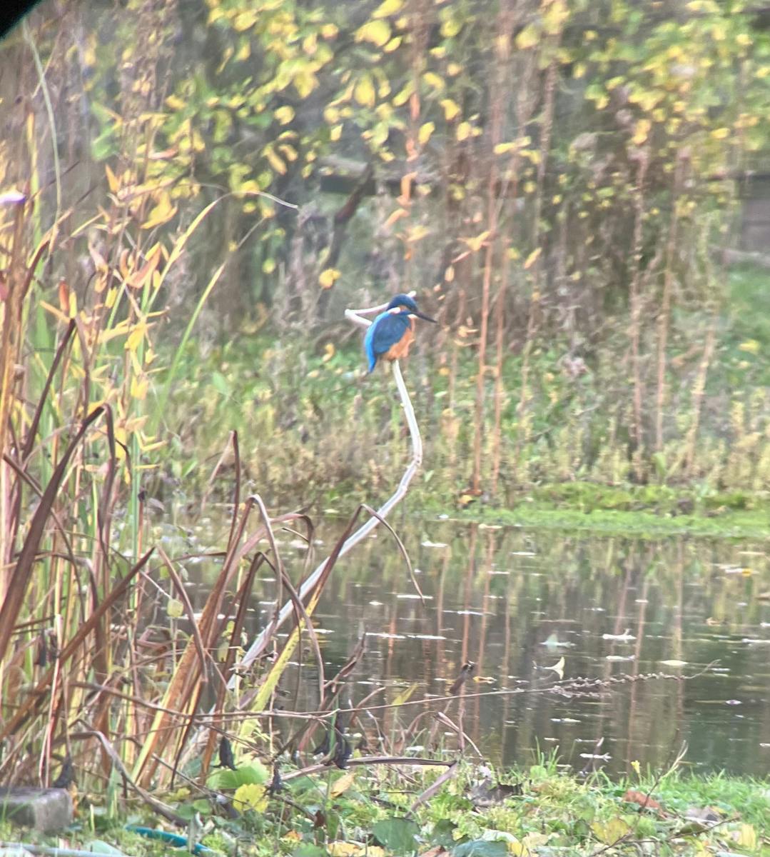 Met zijn kleurrijke vederdracht in aanvalsmodus snijdt een mannetjesvogel door het troebele vijverwater. Het onderwaterleven houdt voor luttele seconden hun kieuwen stevig dicht. Een robuuste kop met vinnige ogen komt vliegensvlug boven. Met enkele slagen van zijn blauwe stevige vleugels spat hij de laatste druppels water van zich af en blijft even ter plaatse hangen. Uit zijn snavel bungelt een minuscuul visje. Zijn pienter lijkende ogen speuren de omgeving af. Zijn kopje beweegt heen en weer totdat hij opvliegt naar de laaghangende takken die de vijver deels verborgen houden. 'Spits, spats,' met enkele welgemikte slagen tegen een dunne tak slaat hij het visje te pletter. In drie slokken is het opgepeuzeld. 'Hup', daar gaat hij opnieuw het water in. Met een formidabele duik 'vliegt' hij haast door het water. Deze handelingen voert hij wel een twintigtal keer uit. Vanop een afstandje, verscholen in de takkenwal, observeert een van tak naar tak springend roodborstje hongerig elke actie van de ijsvogel. Vogels communiceren, op hun manier.