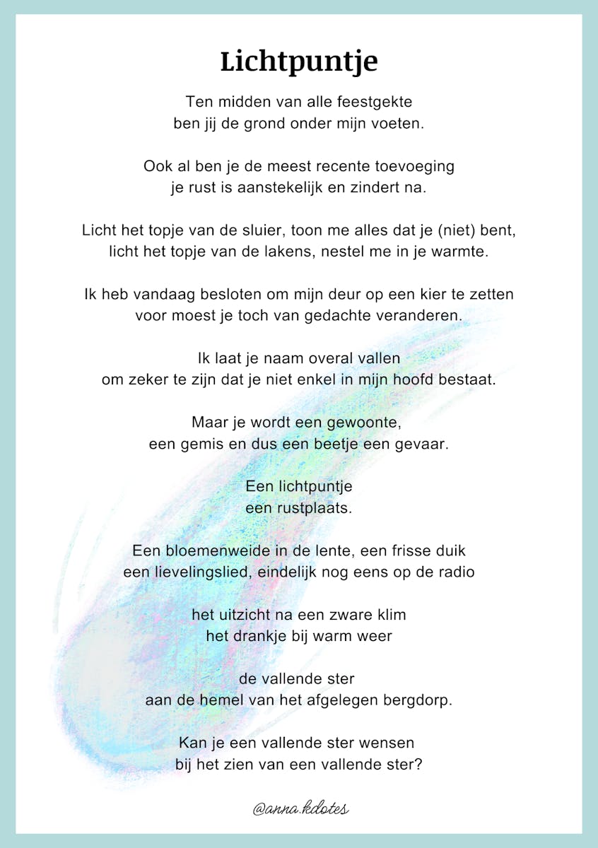 om zeker te zijn dat je niet enkel in mijn hoofd bestaat.