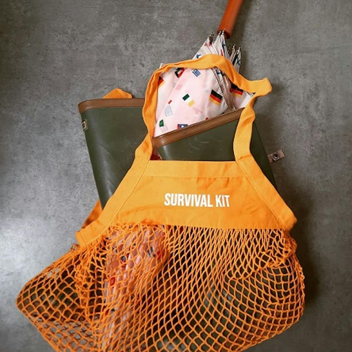 Je herkent me aan het okergele, stoffen zakje met opschrift "Survival Kit". Daarin: een theezakje voor wanneer er warm water in plaats van thee uit het apparaat komt, een mand om fruit of groenten in te schikken (eerst zaten er ook fruit en groenten bij, maar dat bleek niet erg praktisch; fruitvliegjes en schimmel horen niet thuis in een cadeau), een foto van mezelf van toen mijn tanden nog van elkaar afstonden, en een gouden vierkleuren-Bic (omdat er toch iets van mezelf bij moet zitten, vind ik, want ook al ben ik eerder meegaand, er ís een vleugje eigenheid).