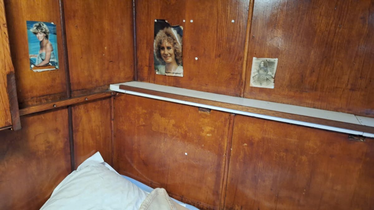 Drie maanden al. De mannen hebben de romp bezwangerd met vissen. Naast mijn bed hangen verweerde borstenfoto’s van mijn voorganger “tettenfretter”. De échte verstekeling ben ík niet. Dat is min of meer een meerminjager. Die wil dit schip ontzwangeren.