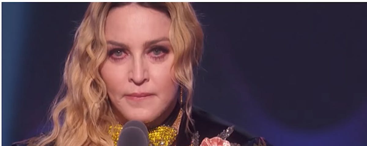 Het begon een beetje als business as usual. Queen Madonna wordt op het podium gevraagd, krijgt een denderend applaus, krijgt een beeldje. En dan vraagt ze om stilte. Haar eerste woorden waren niet echt origineel : ‘I always feel better with something hard between my legs’, refererend naar haar award en heel even dacht ik : oké, gaan we die toer weer op, een druk op ‘next’ en zo naar een volgende versie van ‘Vogue’.