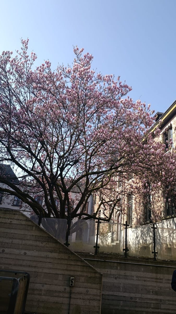 In de binnentuin van het oude Gasthuis staat een magnolia. Ik zie hem elke dag door de grote glazen wand van het cultuurcentrum waar ik werk. Oude muren rondom, een modern gebouw van glas en beton ervoor, en daartussen een boom die elk voorjaar roze ontploft.