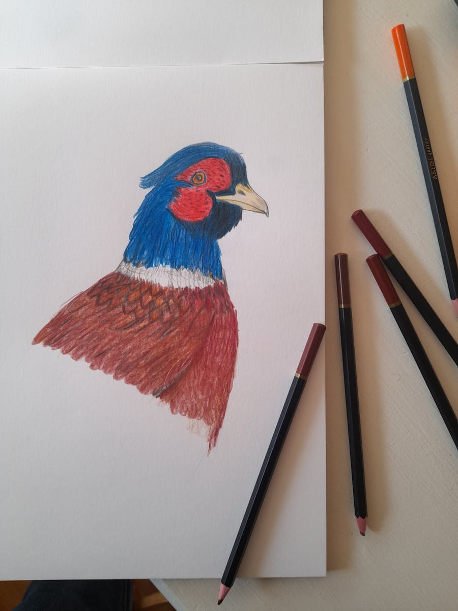 Eens thuisgekomen teken ik meneer fazant of het kleine beetje fazant in mezelf.