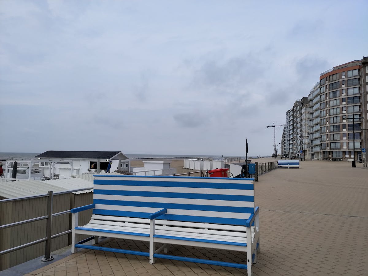 Gerda trekt vaak naar de witblauw gestreepte bank op de dijk in Westende. Een dik kussen onder de arm, wat kruiswoordraadsels en een roman van Sally Read, in haar schoudertas. De bank staat wat schuin, georiënteerd naar de middagzon. Een kokette dame, van in de veertig, zit op de hoek van de bank. Ze bladert in een toeristische brochure.