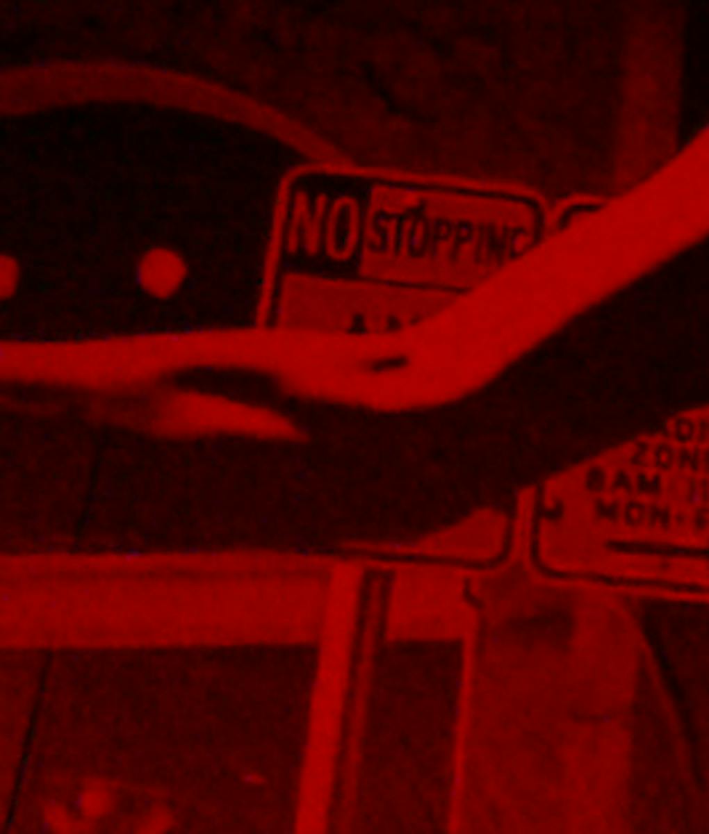 een schoon T-shirt aan, draagt zijn handen voor zijn mond