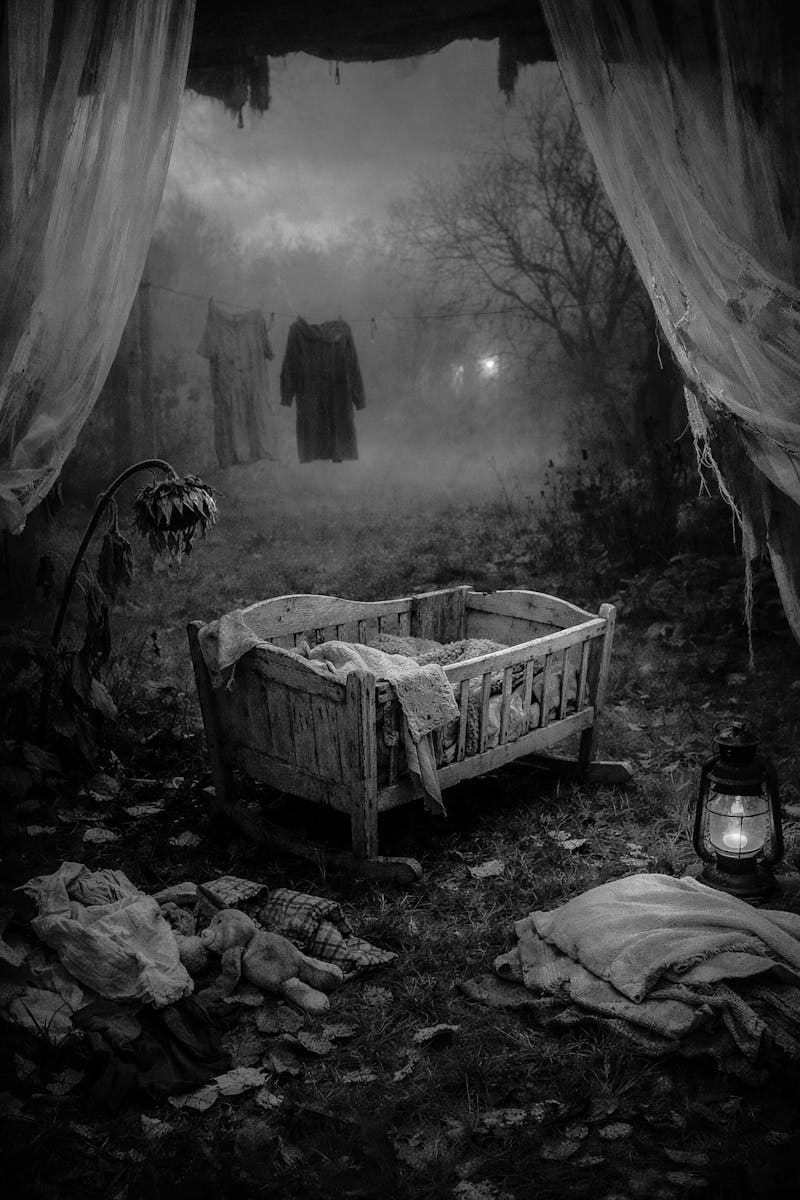 Er slaapt een wieg op het gazon,