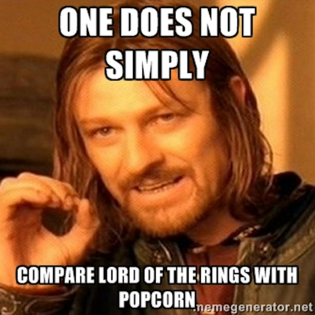 Een juweeltje, jouw Lord of the Rings-trilogie. Drie keer goud. Drie kanonnen van kijkcijfers. Bomvol fantasie. En popcorn. Zo wit als het lege scherm waar ik naar staar. Gevuld met verwachting – en na de reclames ook met popcorn. Oh lord, wat ben je geniaal. Die verfilming. Die figuren. Die setting – goeie dingen komen altijd in drie.