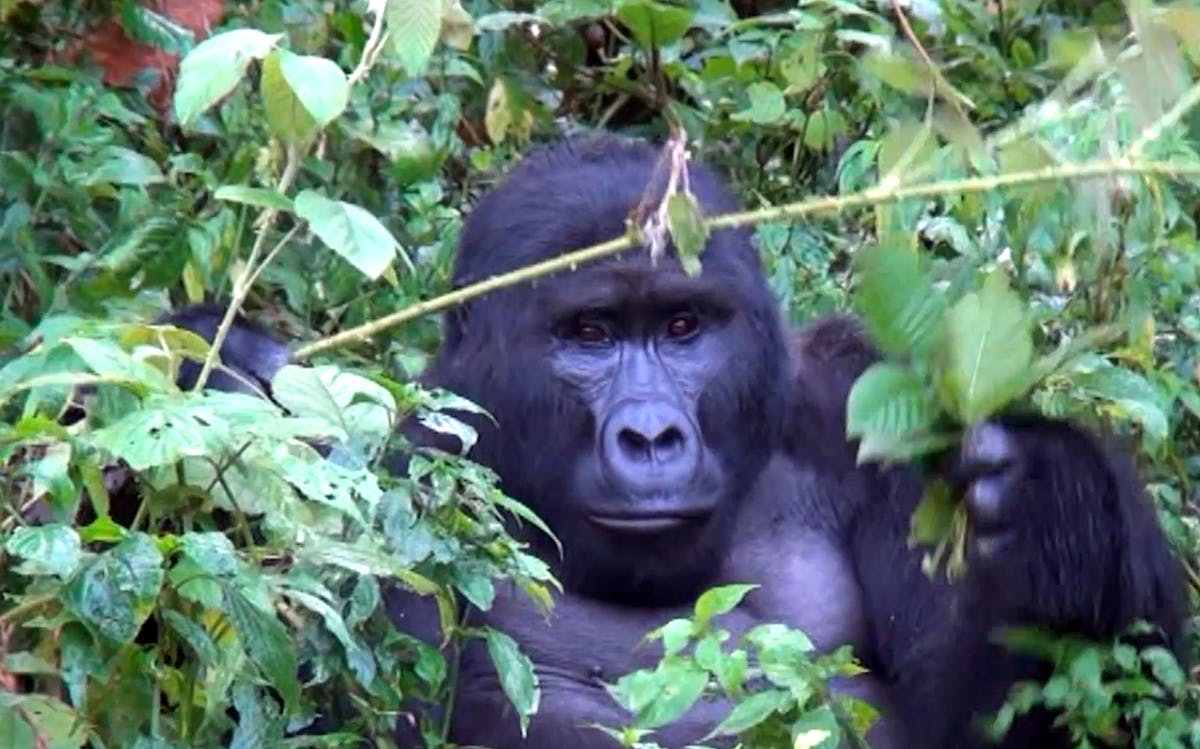En daar, op amper twee meter afstand, verscheen een enorme zilverrug, de patriarch van een gorillafamilie. De wereld leek stil te staan. Het was alsof de tijd geen betekenis meer had, alsof we in een andere realiteit waren. Zijn donkere ogen, vol intelligentie en kracht, ontmoetten de onze. Hij zat daar rustig, onaangedaan door onze aanwezigheid, en genoot van zijn omgeving. Hij plukte bladeren van een plant en at, alsof hij zich helemaal bewust was van zijn koninklijke positie in het bos.