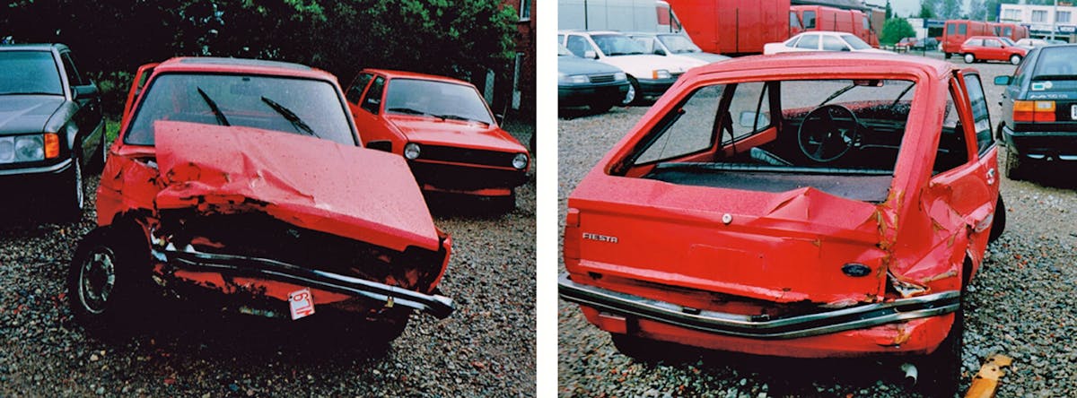 Binnen een kwartier stond hij er. Zijn ogen vernauwden toen hij de Fiesta zag.