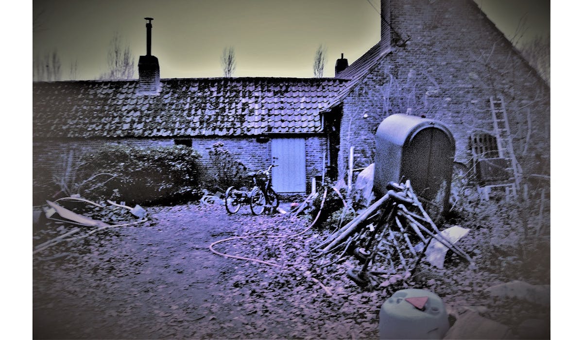 Hij werd opgehangen, zijn imposante kop. Als je die deur achter die driewieler binnengaat, dan kan je hem, zonder tijfel, nog steeds in de ogen kijken. Hij kijkt nooit terug.