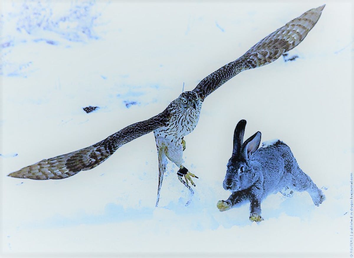 Zijn kopje aait mijn huid terwijl mijn hand vertelt. Over. Een. Konijn. Dat niet zo diep onder de oppervlakte leeft. Alleen maar beeft als er een wortel dreigt te bijten. Of wanneer de adelaar. Zomaar op regendruppels drijft.