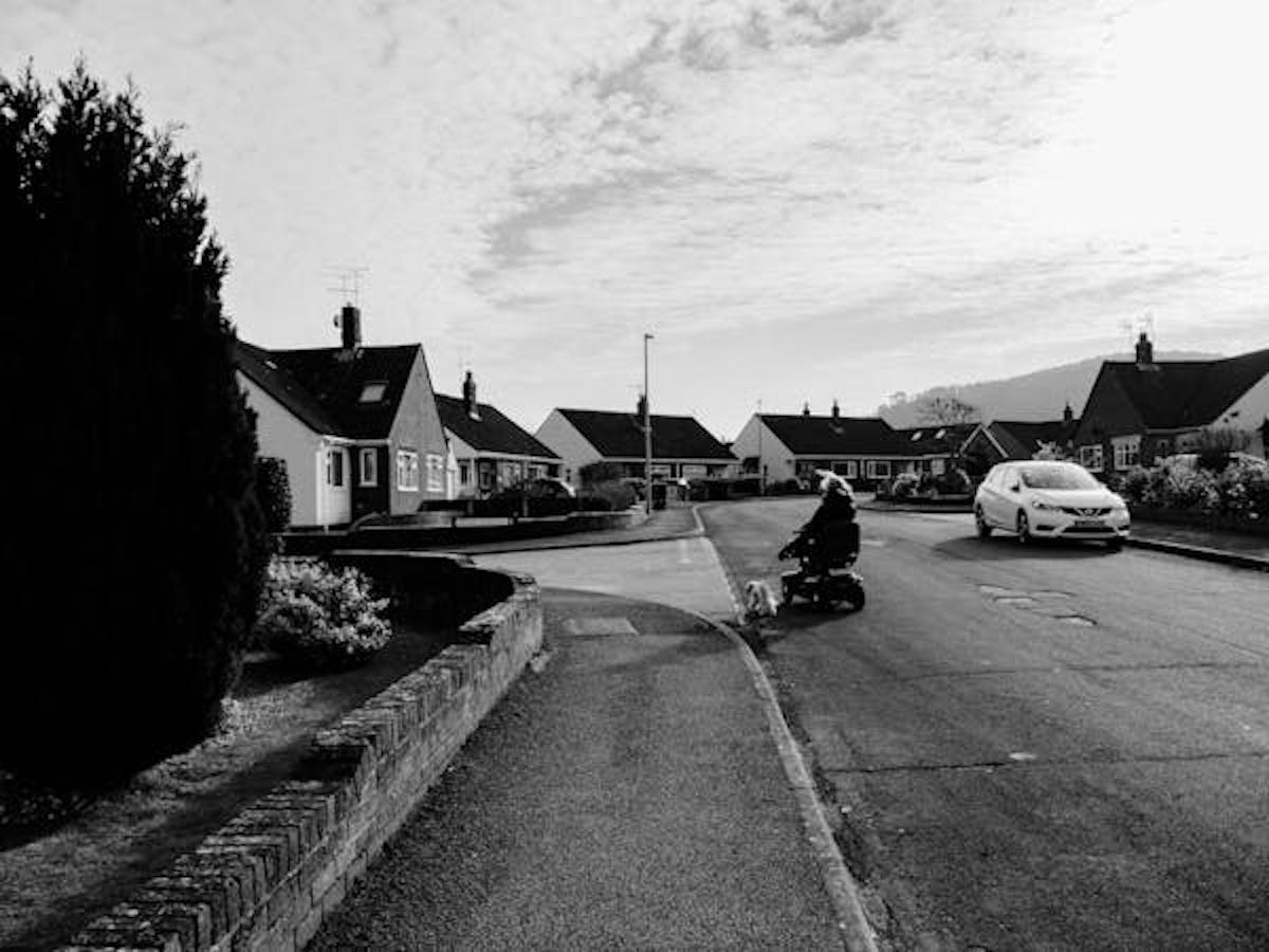 Dwars over een landweg sputterde een scootmobiel. De vrouw die hem bestuurde, vloekte over alle omliggende velden heen. Ze droeg een houthakkershemd en een wijde jeans, haar haren waren ongekamd. Ze snokte aan het stuur waarop de elektrische rolstoel op gang kwam en weer stil viel. Kort naar voren en weer naar achteren, haar lichaam volgde de cadans van de machine. Het geheel leek een slecht gemonteerde automaat van een sadistische schepper. Naast haar zag een labrador het aan. We legden de tractor stil en stapten op de vrouw af, die zich niet liet afleiden door onze aanwezigheid. Ik aaide de hond over zijn bol.