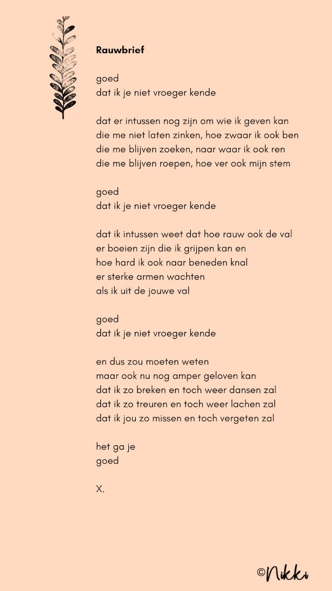 er boeien zijn die ik grijpen kan en hoe hard ik ook naar beneden knal er sterke armen wachten