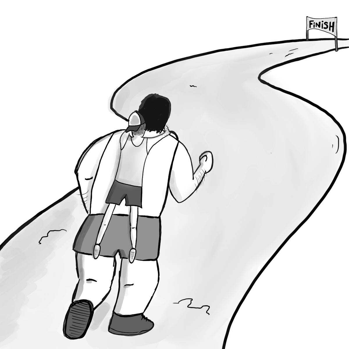 Op zondag 8 oktober 2017 zou ik in Eindhoven mijn eerste marathon lopen. Tot ik twee weken ervoor geblesseerd raakte en er niks anders op zat dan mezelf hysterisch jankend, mankend, wandelend en daarna opnieuw lopend door een revalidatie van anderhalf jaar te sleuren.