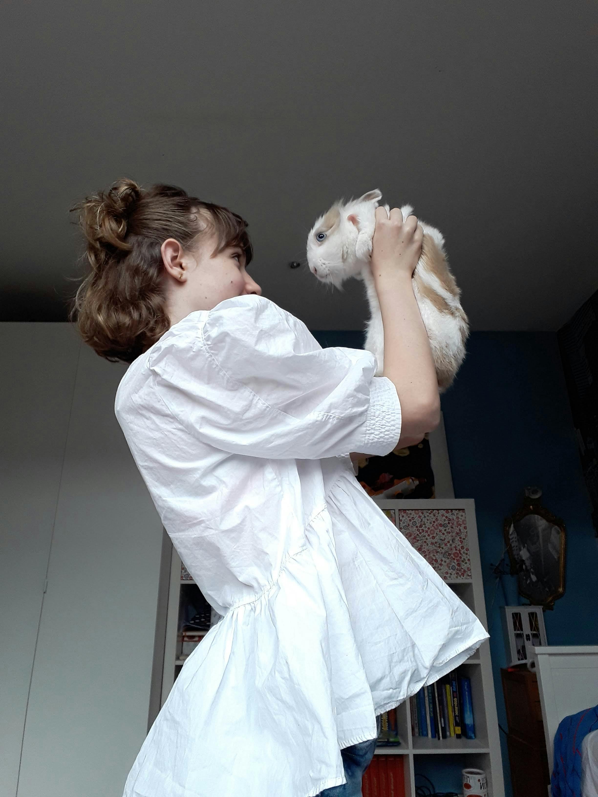 “Shit, shit, shit.” Ik leg het mes terug en was mijn handen. Het water kleurt rood. In de spiegel zie ik mijn grote ogen, de paniek die over mij heen kruipt. Ik lach naar mezelf en loop naar beneden. Mijn mama kijkt mij zuchtend aan en ik lach slap terug.