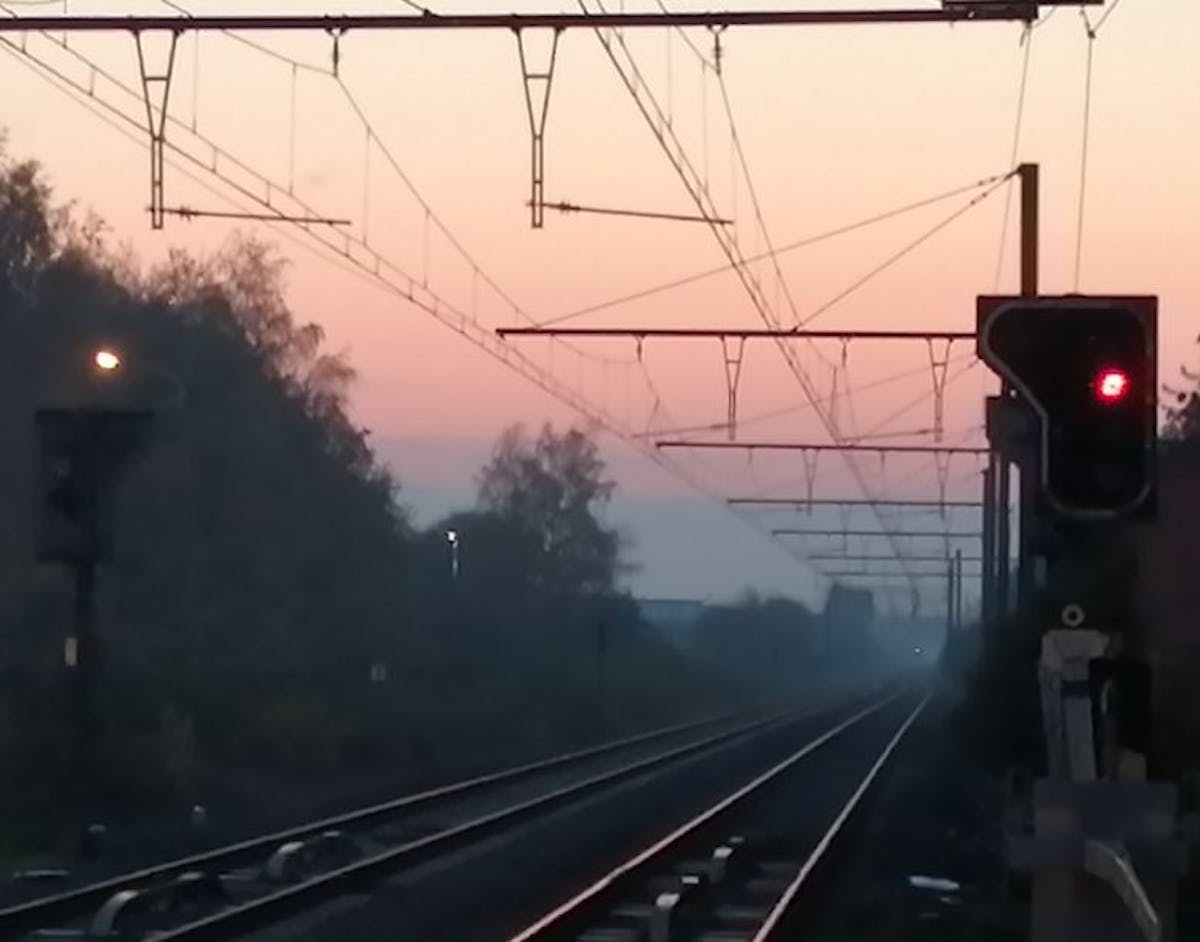 Bij het aanbreken van de dag sta ik klaar op het perron. Vol verwachting (komt hij op tijd vandaag?) wacht ik tot de slagbomen onder muzikale begeleiding de overweg afsluiten. De trein komt het station binnengerold.