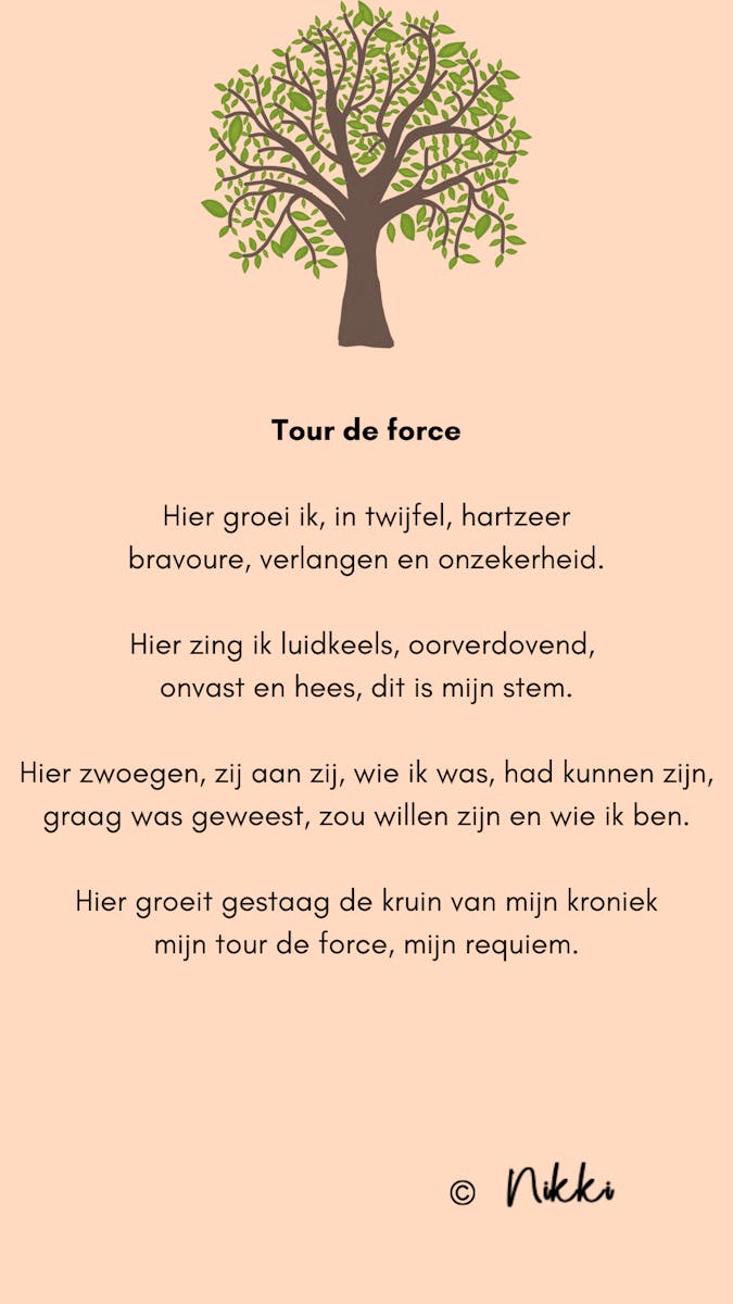 Hier groeit gestaag de kruin van mijn kroniek, mijn tour de force, mijn requiem.