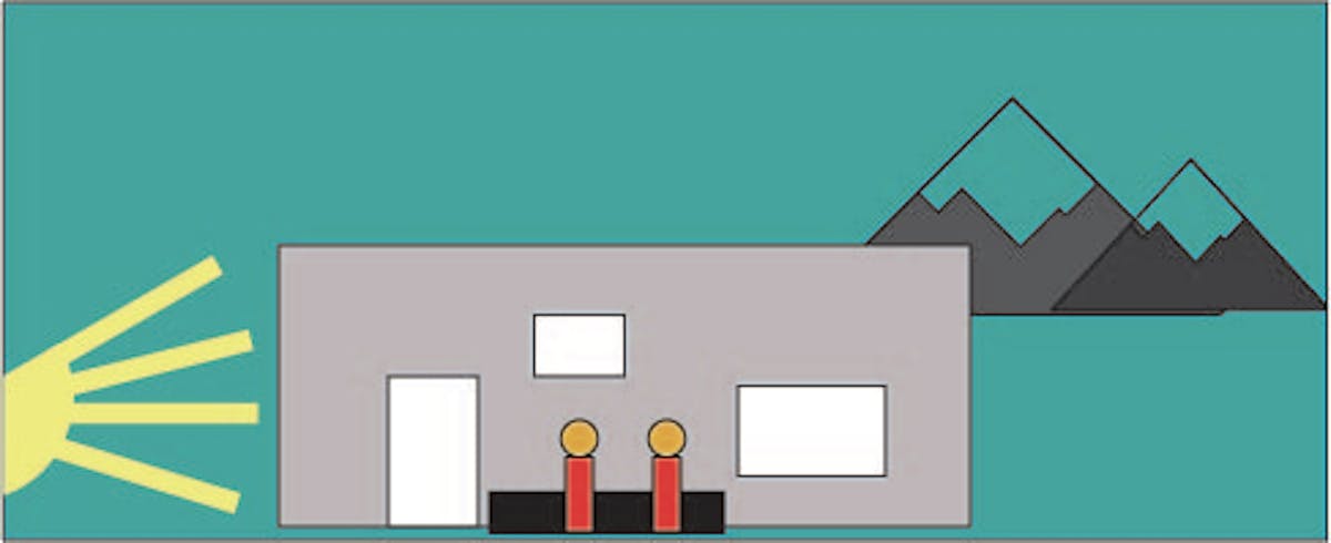 Ik druk af, het juiste frame: een stukje Himalaya rechts bovenin, de ochtendzon schijnt van links. Deze kan boven de bank.
